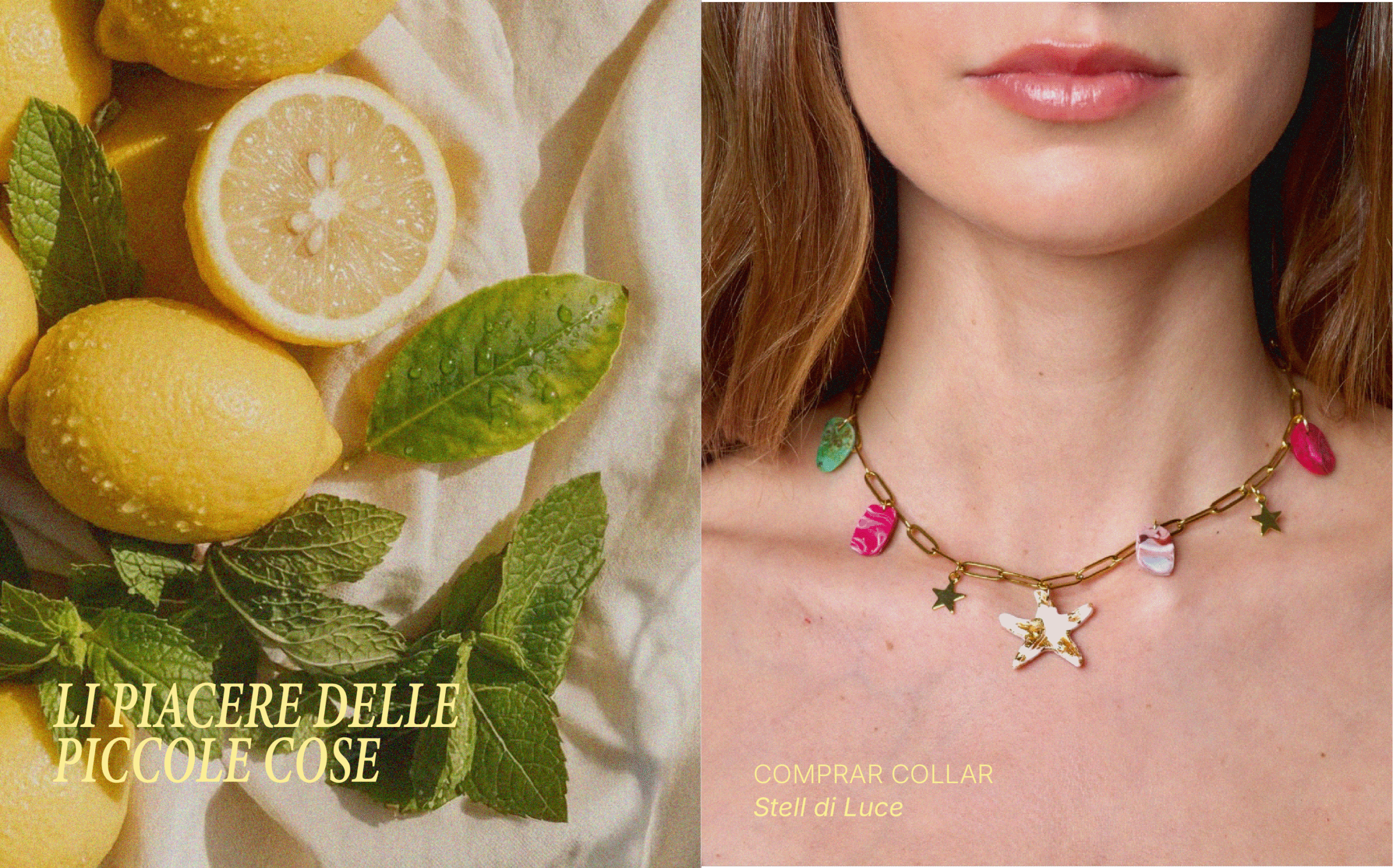 La dolce vita es una colección inspirada en la esencia del mediterráneo y en su manera de vivirlo: sin prisa, dejándose llevar. Piezas que te transportan a ese momento en el que el sol se esconde en el mar y la luz se vuelve perfecta. Piezas que te evocarán el olor del mar a primera hora de la mañana. Piezas que valoran la belleza de los pequeños momentos y que definen la dolce vita.