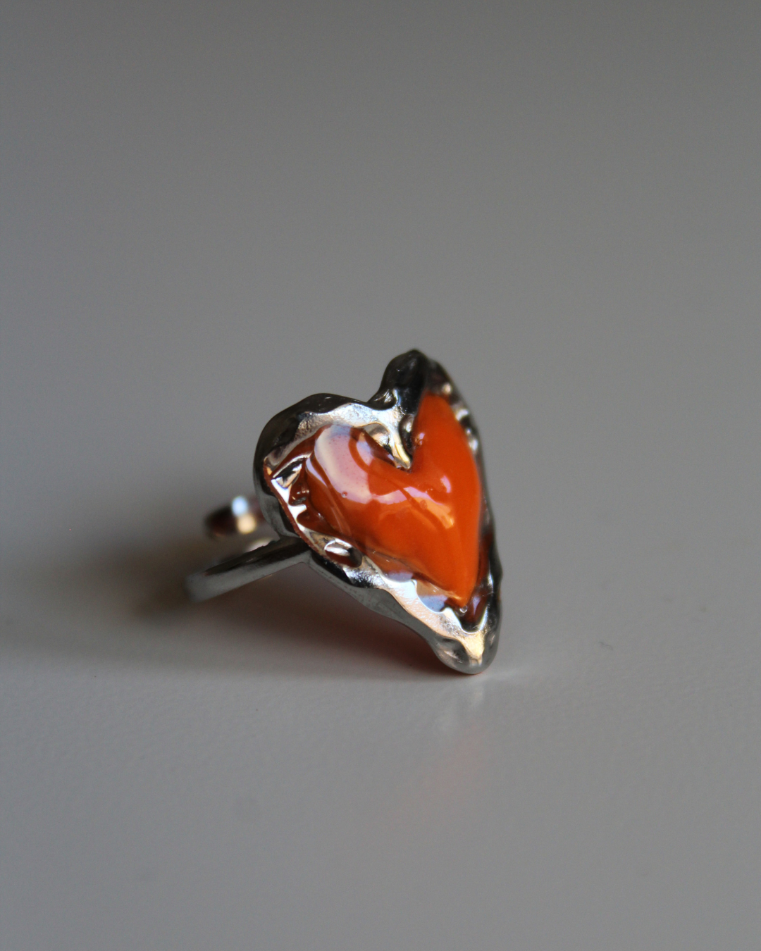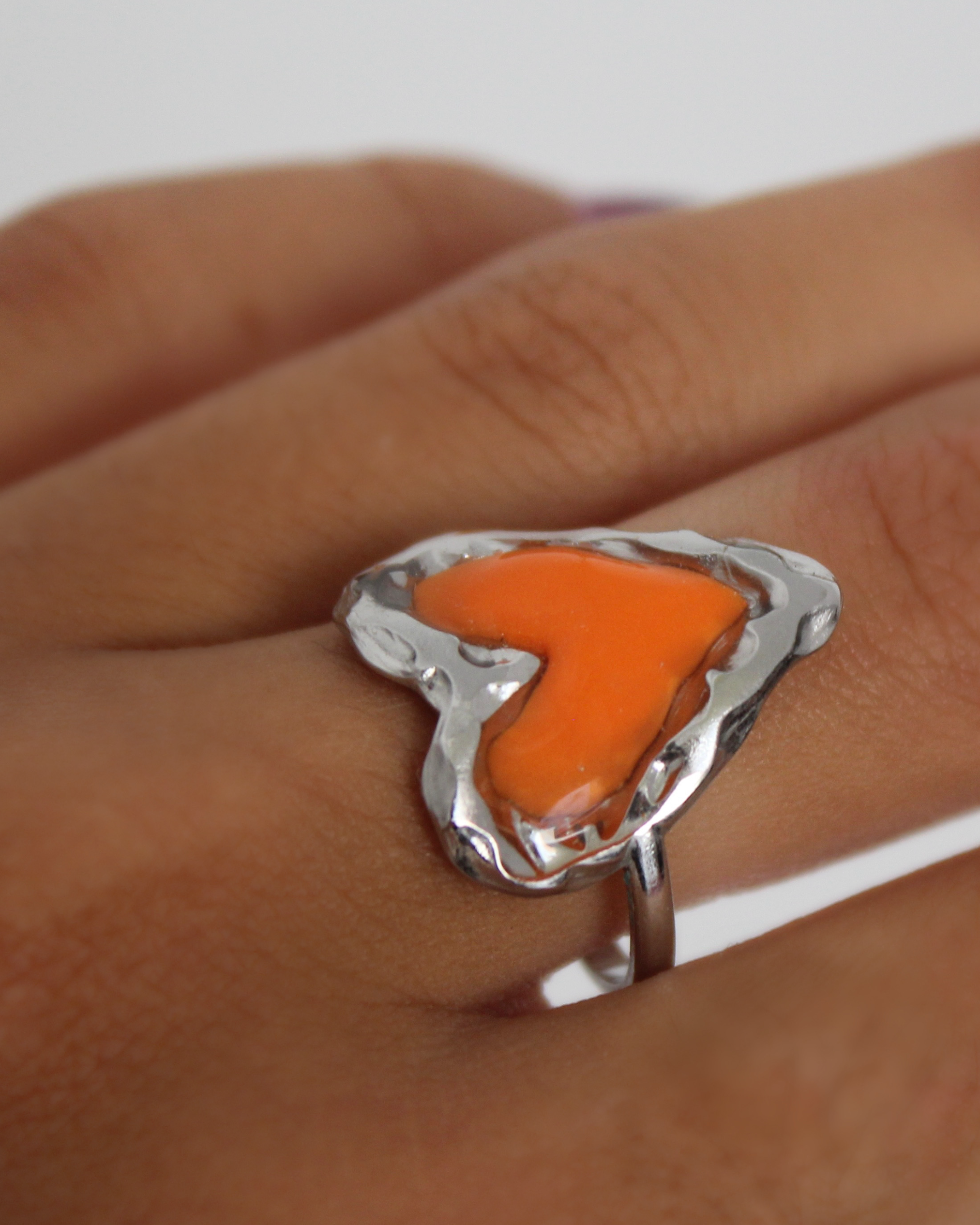 Anillo corazón naranja plateadoAnillo corazón naranja plateado
