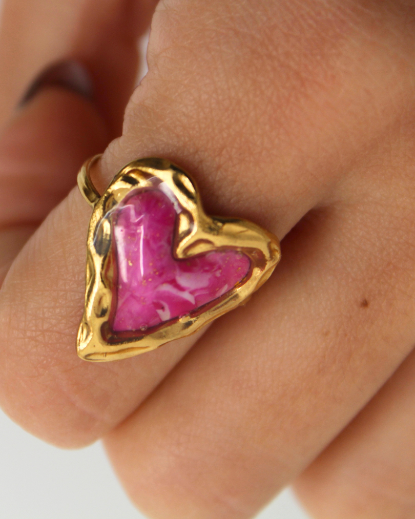 Anillo corazón rosa